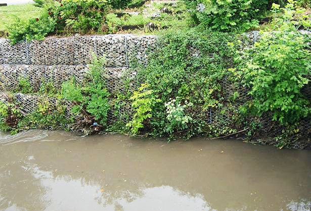 格賓網(wǎng)箱擋土墻技術(shù)可使地下水以及地表滲透水及時(shí)的從結(jié)構(gòu)填石縫隙中滲透出去,能有效解決孔隙水壓力的影響,利于邊坡的穩(wěn)定,同時(shí)促進(jìn)了水土交換能力,增強(qiáng)了水的自凈能力。 2.3整休性好