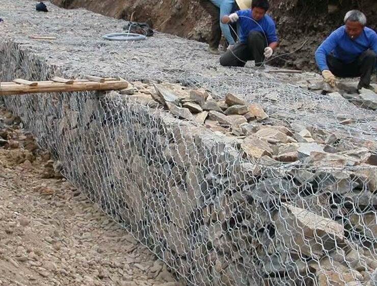 鉛絲籠也叫鉛絲石籠是因為編織的金屬線材像鉛絲,編織的結構成角形網(六角網)制成的網箱