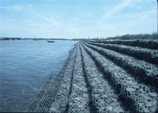 雷諾護(hù)墊是指由機(jī)編雙絞合六邊形金屬網(wǎng)面構(gòu)成的厚度遠(yuǎn)小于長(zhǎng)度和寬度的墊形工程構(gòu)件,其中裝入塊石等填充料后連接成一體,成為主要用于水利堤防、岸坡、海曼等的防 沖刷結(jié)構(gòu),具有柔性、對(duì)地基適應(yīng)性的優(yōu)點(diǎn)。
