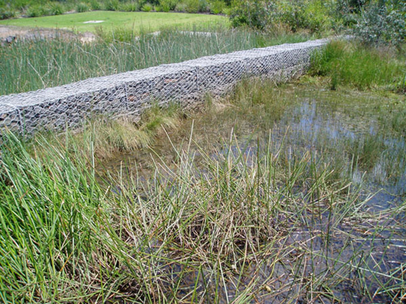 格賓石籠是格賓箱內(nèi)填滿適當(dāng)尺寸的毛石或塊石構(gòu)成。格賓網(wǎng)箱通過六張采用高強(qiáng)度的鍍鋅低碳鋼絲由機(jī)械編織成的雙絞六角形鋼絲網(wǎng)拼成。鋼絲由錘煉過且熱鍍鋅以符合國際標(biāo)準(zhǔn)的軟鋼所做成,雙絞六邊形網(wǎng)及高品質(zhì)的鍍鋅網(wǎng)線決定了格賓網(wǎng)箱的優(yōu)良品質(zhì)。雙絞方式將線綁在一起形成網(wǎng)狀物,如此即使一兩條線斷了,網(wǎng)狀物也不會被解開。鍍鋁、鋅保護(hù)網(wǎng)線長期免于氧化的作用