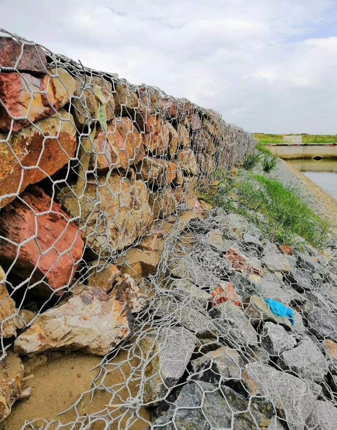 格賓網(wǎng)也稱重型六角網(wǎng)、擰花網(wǎng)、石籠網(wǎng)、三絞節(jié)機(jī)編網(wǎng)、雙絞格網(wǎng)是金屬線材編織的角形網(wǎng)(六角網(wǎng))制成的網(wǎng)箱,使用的金屬線徑是根據(jù)六角形的大小而不同.如果是金屬鍍層的金屬線六角形,則使用線徑為2.0mm到4.0mm的金屬線,如果是PVC包覆的金屬線編織的六角網(wǎng),則使用外徑為3.0mm到4.5mm的PVC(金屬)線.外框邊緣的線則使用比六角網(wǎng)線粗一號的線。格賓網(wǎng)是由經(jīng)表面防蝕處理的低碳鋼絲用機(jī)械編織的雙鉸六角形柔性金屬網(wǎng)經(jīng)剪裁,編邊和組合后制成的各種規(guī)格的網(wǎng)籠。