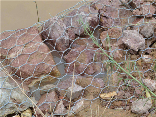 固濱籠是由高抗腐蝕、高強度、具有延展性的低碳鋼絲或許包覆PVC的以上鋼絲運用機械織造而成,依據(jù)ASTM A 975和EN10223規(guī)范,所運用的低碳鋼絲直徑依據(jù)工程設(shè)計需求而不一樣。通常介于2.0-4.0mm之間,鋼絲的抗拉強度不少于38kg/m2,金屬鍍層分量通常高于245g/m2格賓網(wǎng)片的邊際線直徑通常要大于網(wǎng)線直徑。其雙線絞合有些的長度不得小于50mm.以確保絞合有些鋼絲的金屬鍍層和PVC鍍層不受損壞。