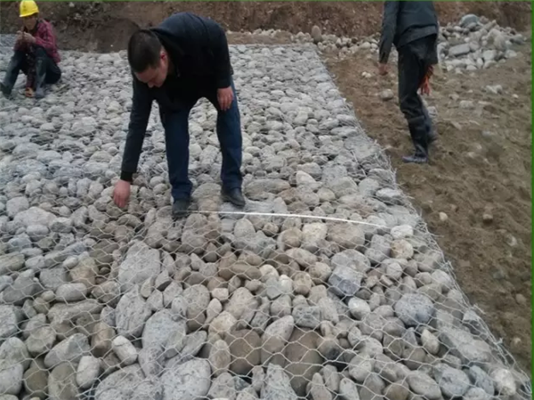 安裝要求:將折疊好的格賓護(hù)墊置于平實(shí)的地面展開,壓平多余的折痕,將前后面板、底板、隔板立起到一定位置,呈箱體形狀。相鄰網(wǎng)箱的上下四角以雙股組合絲連接,上下框線或折線綁扎并使用螺旋固定絲絞合收緊連結(jié)。邊緣突出部分需折疊壓平。將每個(gè)網(wǎng)箱六個(gè)面及隔斷組裝完整,確保各個(gè)網(wǎng)面平整,然后放在正確的位置上。