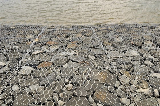 二、固濱籠采用組裝方式,蓋板,邊板,端板,底板單獨(dú)生產(chǎn)組裝成網(wǎng)箱,各部分用螺旋鋼絲纏繞捆綁,網(wǎng)箱所有邊絲均采用粗絲加強(qiáng)。