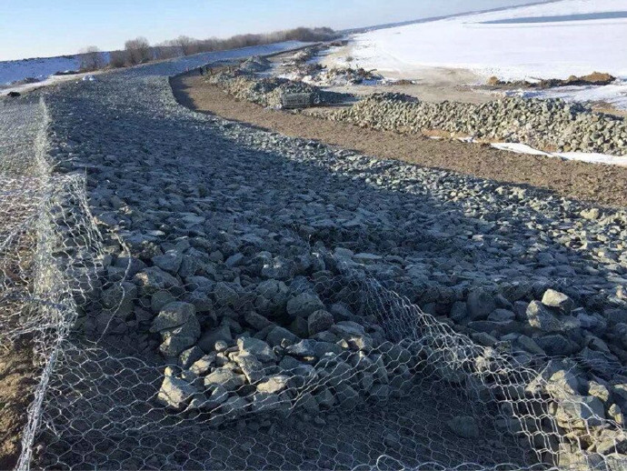 雷諾護(hù)墊是指由機(jī)編雙絞合六邊形金屬網(wǎng)面構(gòu)成的厚度遠(yuǎn)小于長度和寬度的墊形工程構(gòu)件,其中裝入塊石等填充料后連接成一體,成為主要用于水利堤防、岸坡、海曼等的防沖刷結(jié)構(gòu),具有柔性、對(duì)地基適應(yīng)性的優(yōu)點(diǎn)。