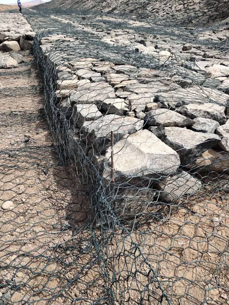 雷諾護(hù)墊是指由機(jī)編雙絞合六邊形金屬網(wǎng)面構(gòu)成的厚度遠(yuǎn)小于長(zhǎng)度和寬度的墊形工程構(gòu)件,其中裝入塊石等填充料后連接成一體,成為主要用于水利堤防、岸坡、海曼等的防 沖刷結(jié)構(gòu),具有柔性、對(duì)地基適應(yīng)性的優(yōu)點(diǎn)。