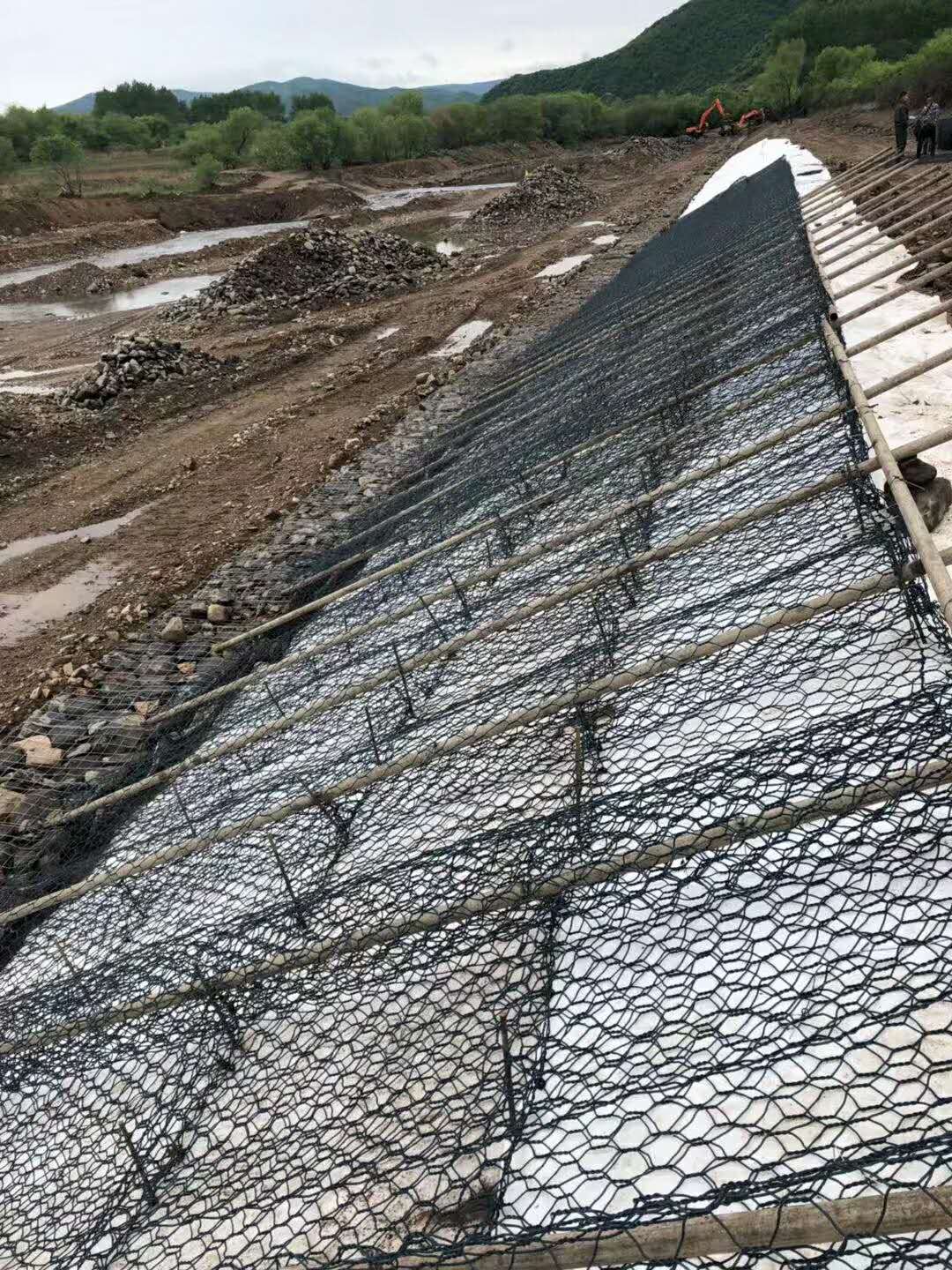 雷諾護墊箱工程施工非常便捷,填充石料可以采用河流中的鵝卵石或采石場的一般碎石,填石的裝填方法非常靈活,既可以完全采用機械化施工,也可以采用輔以人工的半機械化施工,在沒有機械輔助的情況下,人工裝填的施工效率也達到漿砌石結(jié)構(gòu)的2-3倍,這對于北方地區(qū)冰凍期長、施工周期較短的情況下尤其具有重要意義。而且雷諾護墊箱可以在冬季嚴寒的條件下施工。