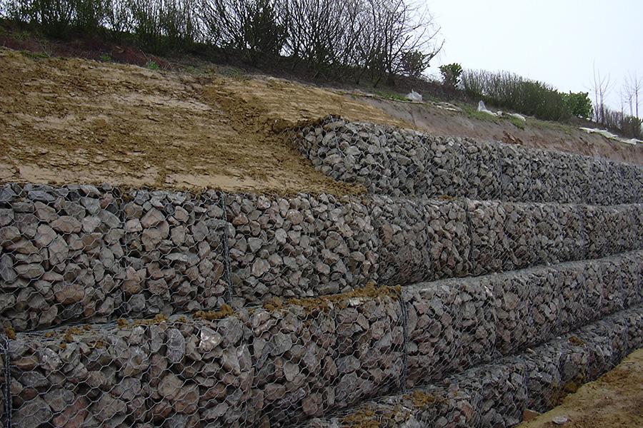 新石籠護坡或擋土墻工程,繼續(xù)沿著原來的斜坡或擋土墻設備籠子的延伸方向,肆意添加了長長的城墻。耐受力條件的承載能力和墻壁承諾最后粘接籠,你可以添加原始的墻壁上方的擋土墻墻的高度。