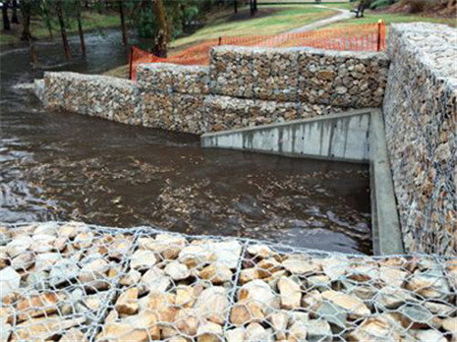 石籠網(wǎng)是金屬線材編織的角形網(wǎng)(六角網(wǎng))制成的網(wǎng)箱,使用的金屬線徑是根據(jù)六角形的大小而不同。如果是金屬鍍層的金屬線六角形,則使用線徑為2.0mm到4.0mm的金屬線,如果是PVC包覆的金屬線編織的六角網(wǎng),則使用外徑為3.0mm到4.0mm的PVC(金屬)線.外框邊緣的線則使用比六角網(wǎng)線粗一號的線。