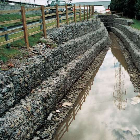 石籠網(wǎng)箱在施工現(xiàn)場(chǎng)經(jīng)石頭填充,構(gòu)成具有柔性、透水性及整體性的結(jié)構(gòu), 如擋墻、河道襯砌、堰等支擋的防沖蝕工程。