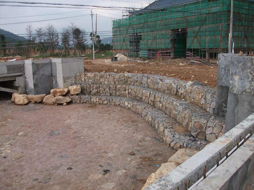 格賓網(wǎng)箱的身體可以被描繪的宗旨,工廠生產(chǎn)半成品施工現(xiàn)場根據(jù)裝配草圖定型,然后再鋪設斜坡或挖掘整理了良好的基礎坑,鋪坡或拼圖壘成籠擋土墻,灌進填料加蓋子網(wǎng)絡即成。很簡單,受氣候的干擾,并適合機械化作業(yè),不僅要確保施工質量,但也加快了項目的進展情況[3]。
