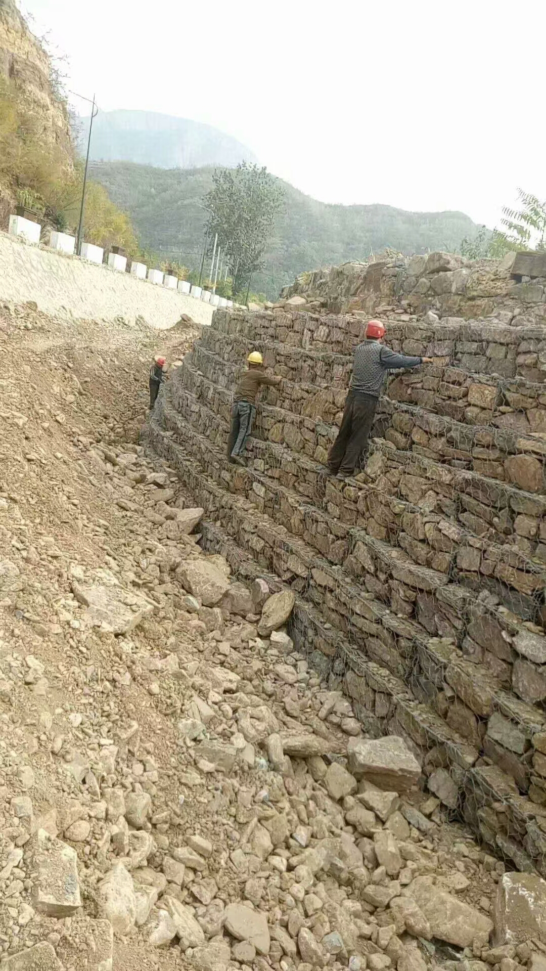 固濱籠(格賓石籠)是由蜂巢形格網(wǎng)片,將特種鋼絲鍍膜后,由專用機械編織成的雙絞、蜂巢形網(wǎng)片組裝成箱籠,根據(jù)工程設(shè)計要求裁剪、制作、組裝成箱籠并裝入塊石等填充料后連接成一體的結(jié)構(gòu),是用做堤身、堤基及路基等防護工程的新型結(jié)構(gòu)。岸結(jié)構(gòu)形式可以分為擋墻、護坡、護底、護腳、水下拋石籠等。習慣上又將護坡、護底工程上常用的較薄的一種箱籠稱格賓網(wǎng)墊(高度一般在0.17—40cm)。擋墻、拋石籠常用的較厚的一種稱為格賓網(wǎng)箱(一般高度在50cm以上)。治理山坡、綠化植被及水土保持常用的則稱為格賓植被掛網(wǎng)。